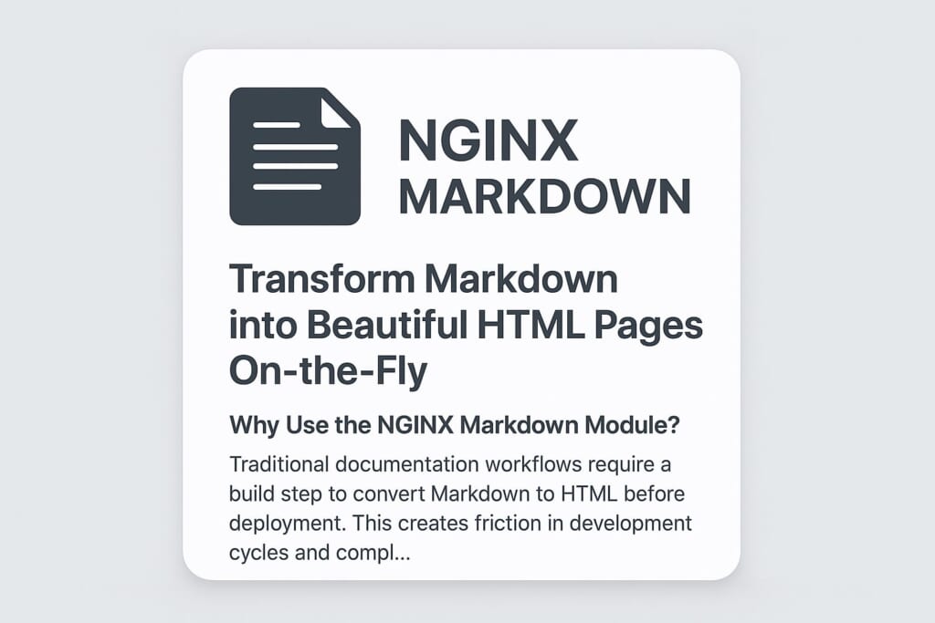 Traditional documentation workflows require a build step to convert Markdown to HTML before deployment. This creates friction in development cycles and complicates content updates. The NGINX Markdown module solves this problem by converting Markdown to HTML at request time, directly within NGINX.