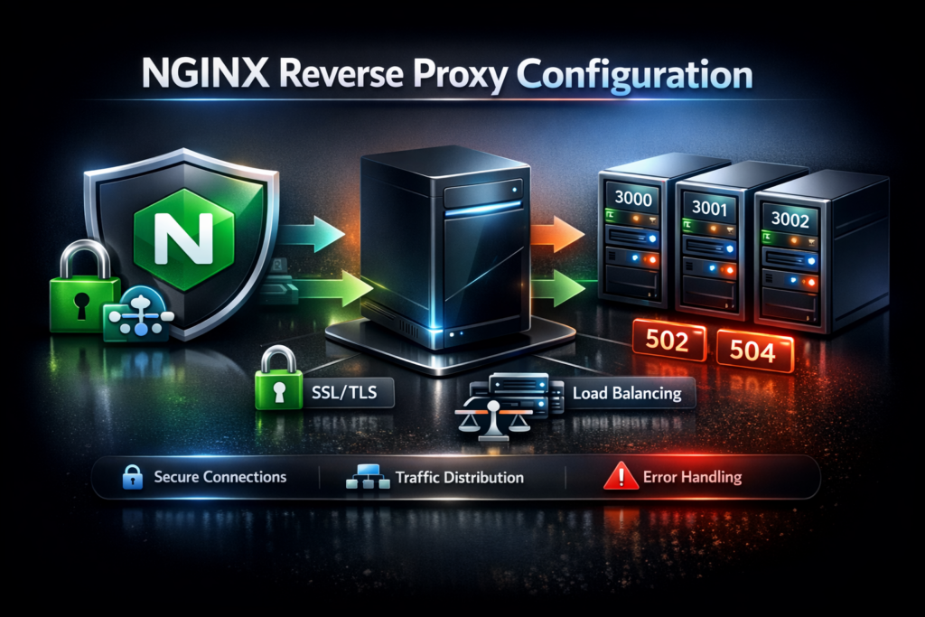 This guide covers everything you need to configure NGINX as a reverse proxyβ€”from basic proxy_pass directives to advanced load balancing, WebSocket support, and troubleshooting common errors like 502 Bad Gateway and 504 Gateway Timeout.