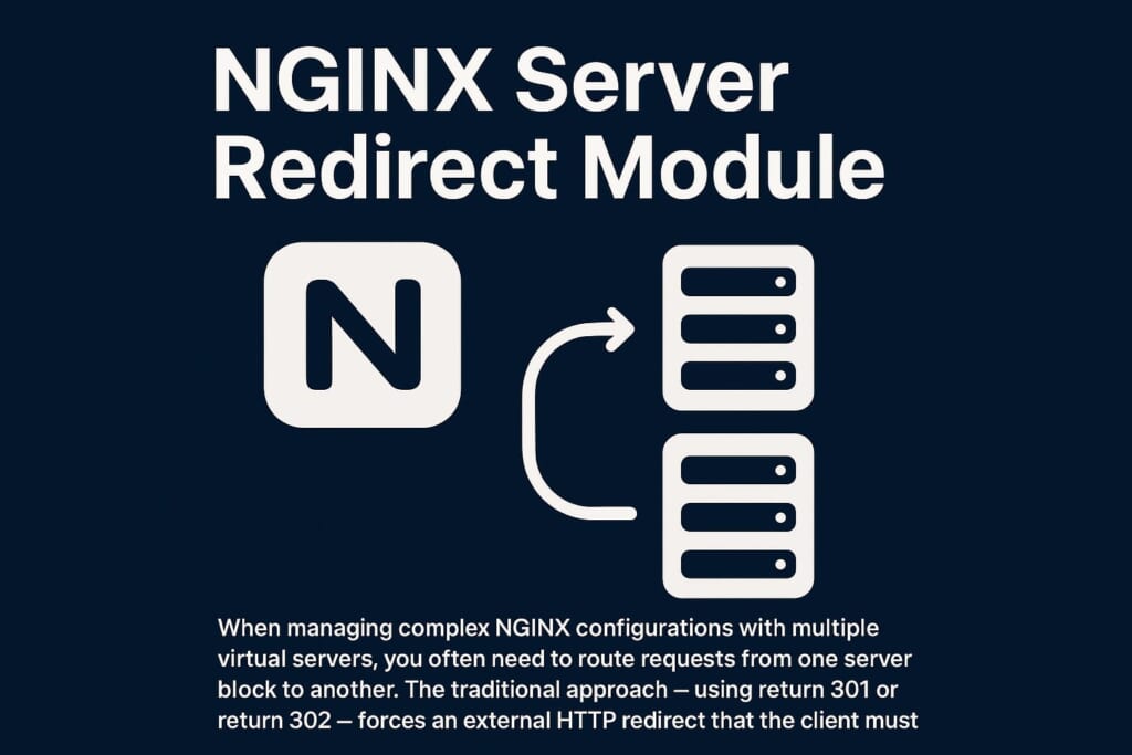 The NGINX server redirect module provides a clean, efficient mechanism for internal routing between virtual server blocks. Whether you need unconditional migration redirects, conditional A/B routing, maintenance mode switches, or path-based API gateway patterns, this module handles it without the latency and complexity of external redirects or loopback proxy connections.