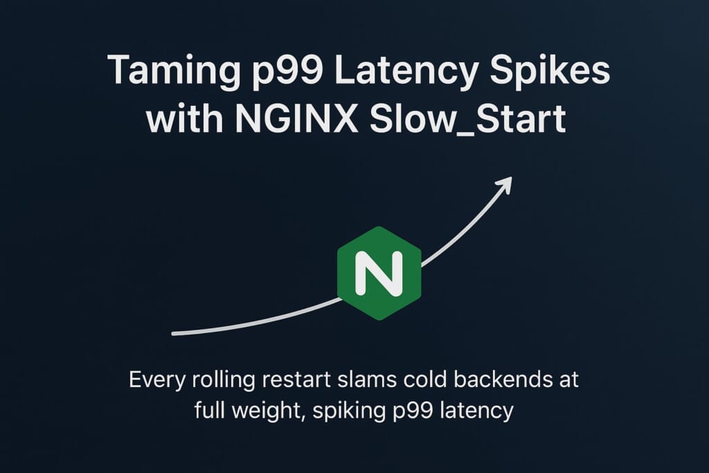 nginx slow_start matters more than most sysadmins realize. Every rolling restart, every auto-scale event, every blue-green cutover punishes your backends with a slam of cold traffic – and each of those slams is a measurable p99 tail spike that rolls up into your SLO math. Giving each fresh peer a 30-second runway eliminates the slam entirely, at zero additional complexity in the config file.